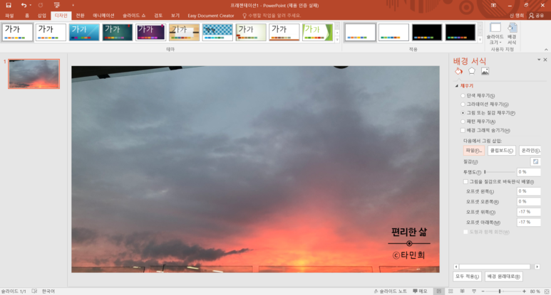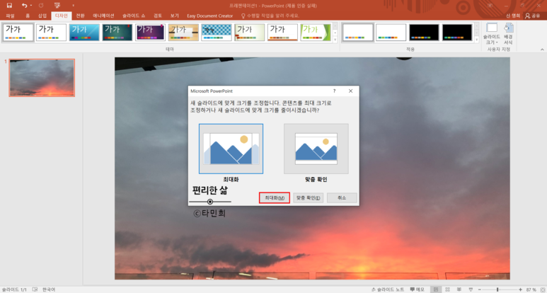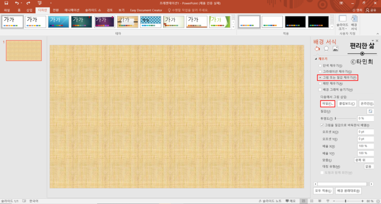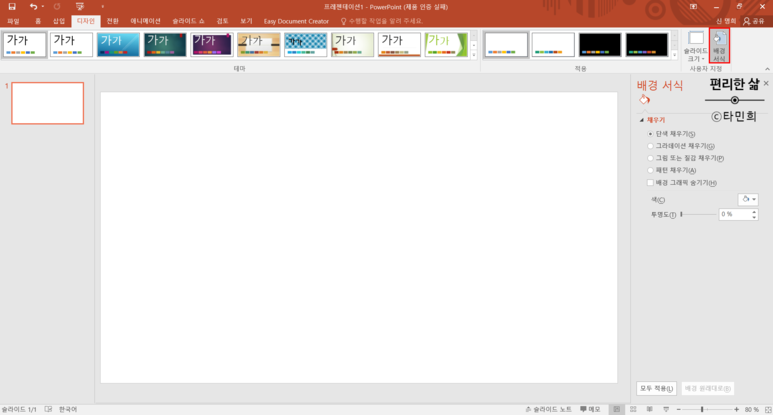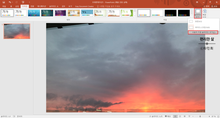 파워포인트(PPT) 배경사진 추가 및 슬라이드 크기조절