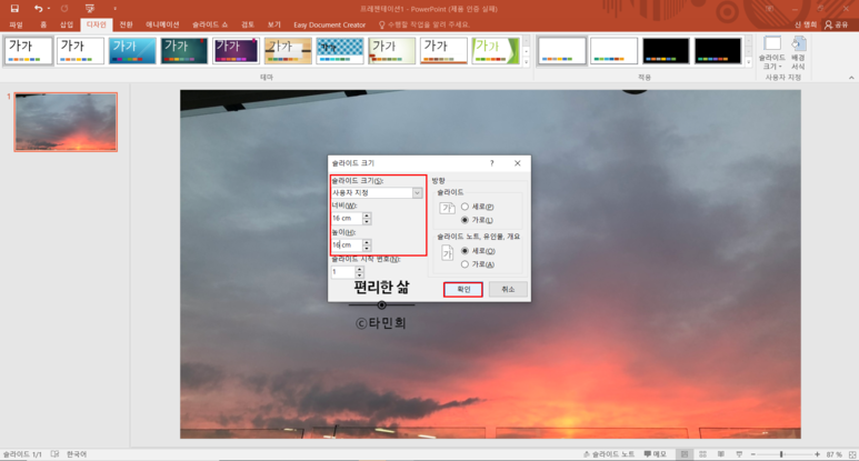 짠! 슬라이드 크기 조절도 금방 하실 수 있겠죠? :)