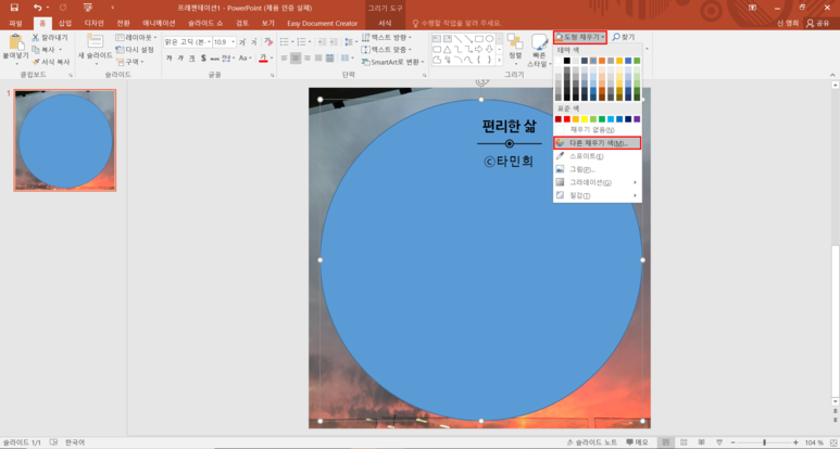 2. 도형을 선택하여, [도형 채우기] - [다른 채우기 색]을 클릭해주세요.