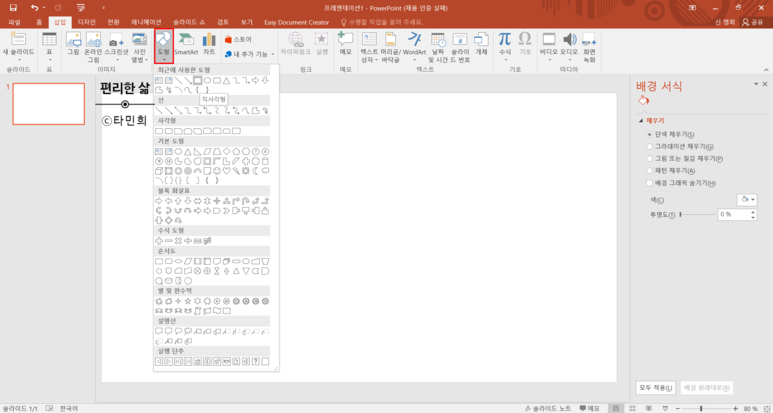 [파워포인트] 배경사진 추가/ 슬라이드 크기조절 - 1분 안에 간편하게!